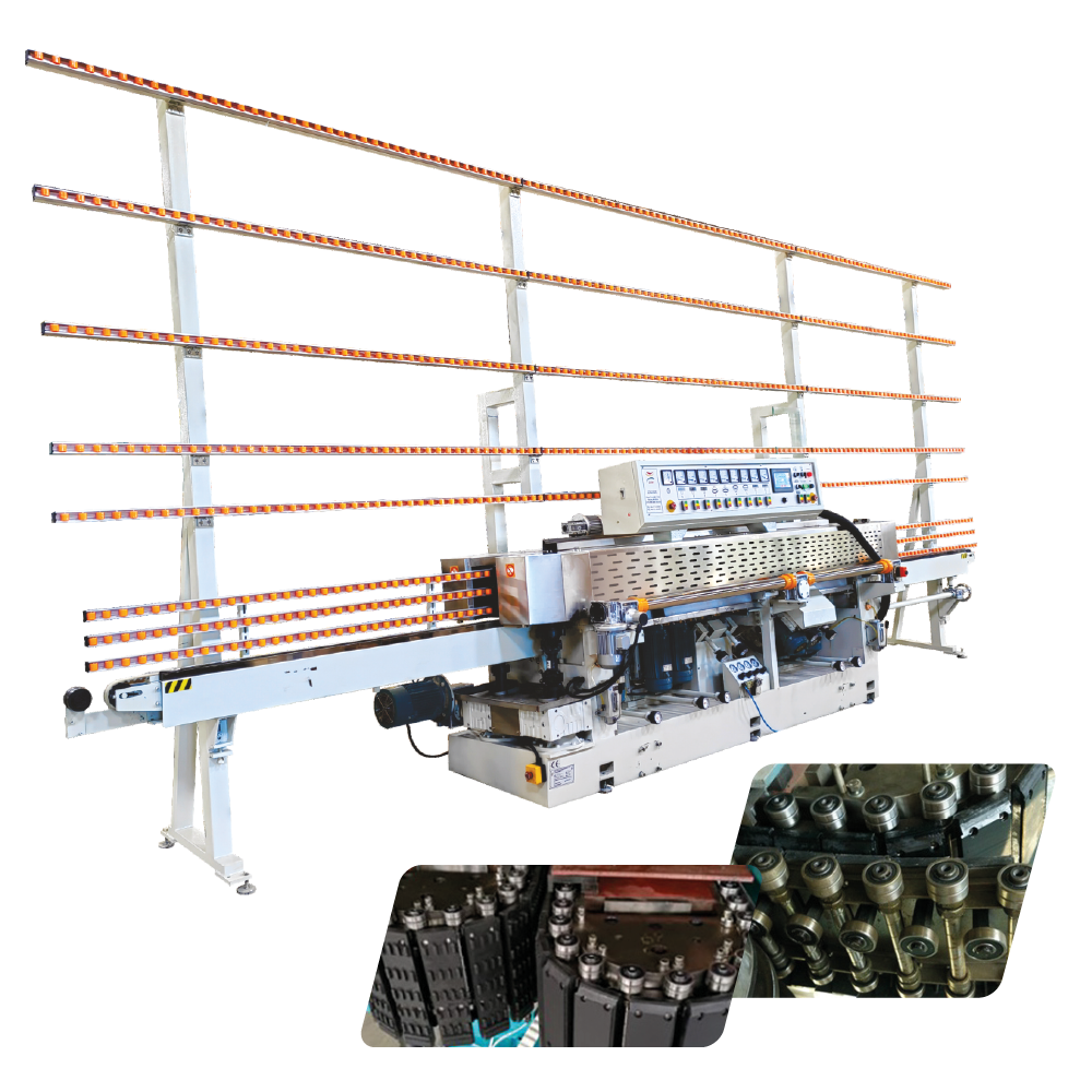 Esta lapidadora foi desenvolvida para atender as demandas das indústrias vidreiras com maior eficiência, resistência e capacidade produtiva para peças de grandes dimensões e peso, além do baixo custo de manutenção. O sistema de tração duplo rolamentado (bloco frontal e posterior) e guias lineares em aço inox temperado, garantem durabilidade, estabilidade e maior capacidade de arrasto. O equipamento tem controlador PLC com painel IHM touch-screen e sistema de fácil aprendizado. O dispositivo tem função de compensação de polimento em tempo real, além disso conta com um sensor na entrada da máquina, que identifica a espessura do vidro em processo, evitando problemas mecânicos por erros humanos. também tem um sistema de auto-limpeza interna do conjunto de tração no bloco posterior, garantindo maior durabilidade.
